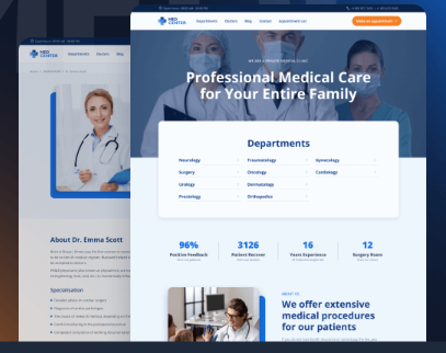 Modern medical booking site with appointments, doctor profiles, responsive design, and smooth ....